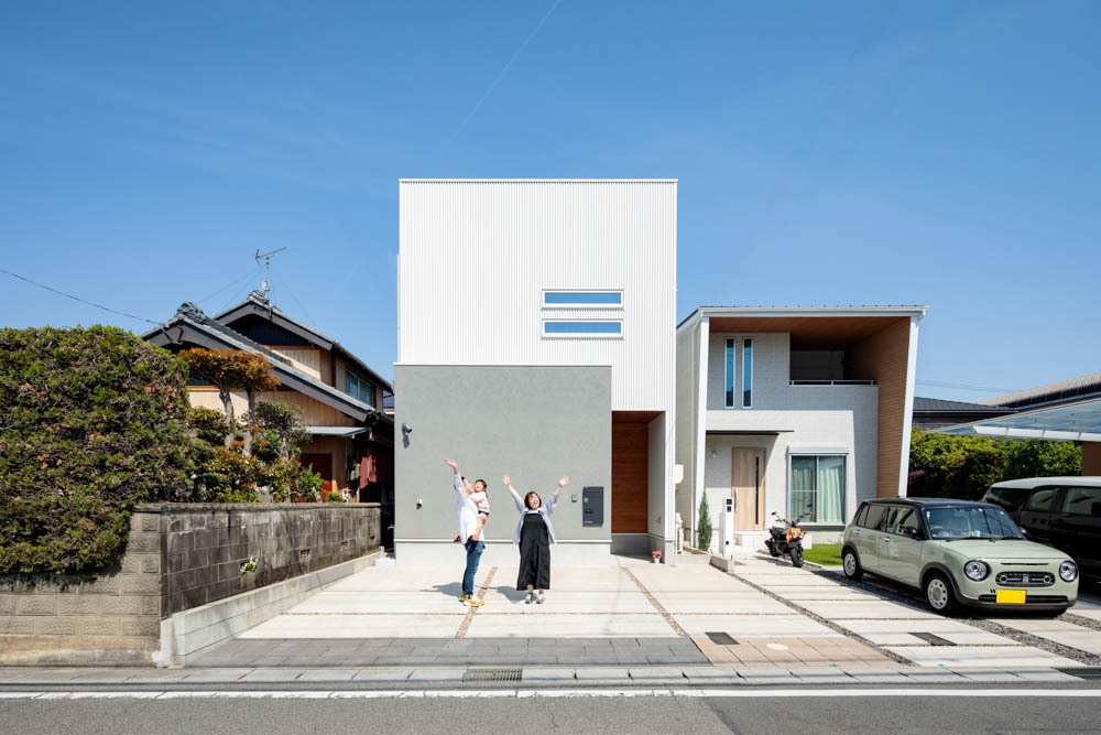 お家の顔となる場所で、爽やかな笑顔のポートレート。