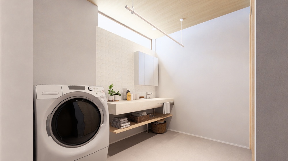 収納含めて4.5帖のゆとりを確保。デザイン性と機能性を両立させた、こだわりの洗面空間です。
