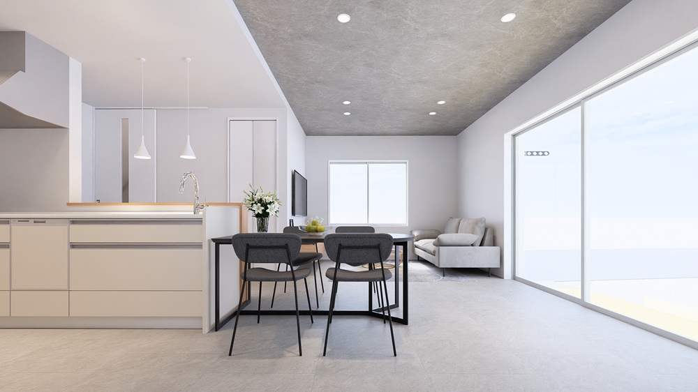 1.5倍のワイドサッシで庭とつながるLDK