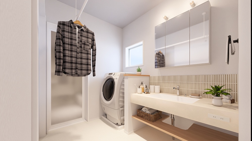 毎朝の準備が楽しくなる、デザイン性の高い造作洗面。