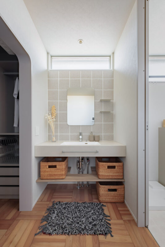 キッチンを中心にした回遊動線、洗濯や片付けをスムーズに行える水回りや収納の配置など、