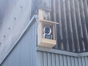 以前に購入した屋内用のカメラを、廃材を使って巣箱のようなものを作って設置しました。