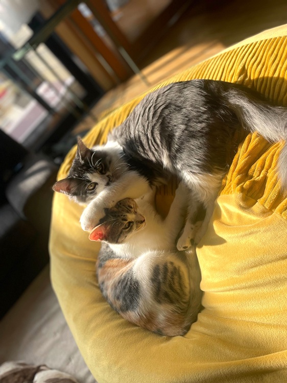 家に迎えてあれからもうすぐ5カ月。1カ月ほど経った頃には、すでに「ごろにゃん」状態。まるで前から家にいたかのようにリラックスし、今では気づけばそっと横に寄り添ってくれるようになっています。