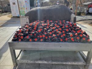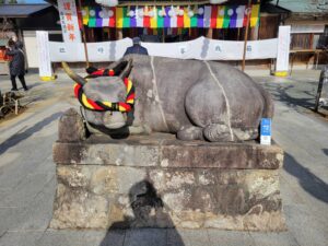 牛さんを撫でて、3年前に返し忘れていた願掛け撫で牛をお返ししてお祈りしてきました