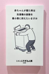 日常の、いい人すぎるよ、と言いたくなるようなことや、微妙に分かるなぁというような、あるあるの展示会です。