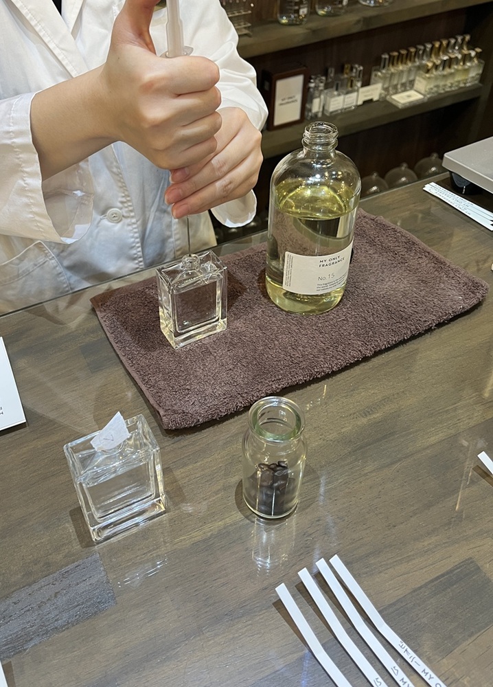 香水に詳しくないのでちゃんと完成するか不安でしたが、店員さんがアドバイスや香りの説明をしてくださるので、楽しんで香水が作れました🌼