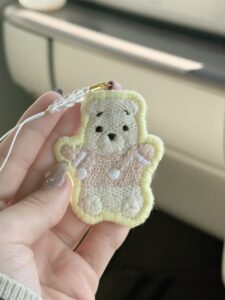 母がスヌーピーのストラップを作っていただいたのを見て、「私も作ってほしい!」とお願いし、プーさんバージョンで作っていただきました。