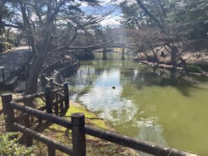 桜の蕾はまだまだ固く、冬景色で動物園の