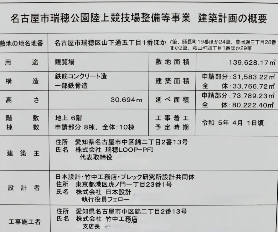 建築主は株式会社瑞穂LOOP-PFIとなっており、