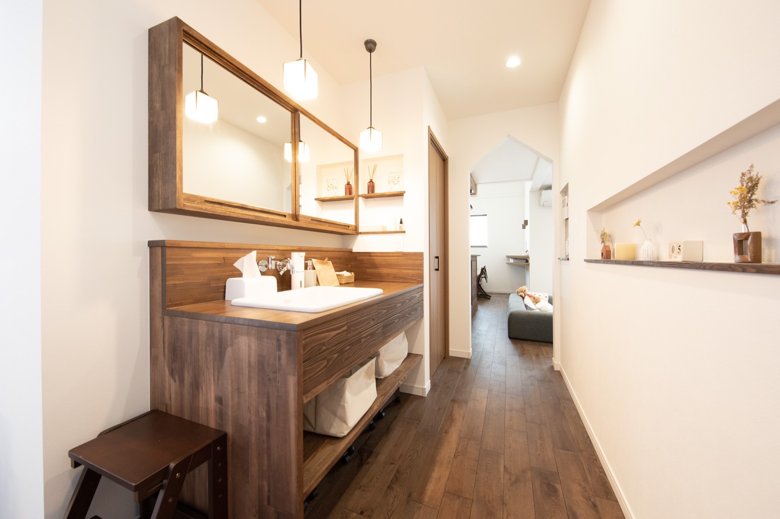 こだわりの手洗いや対面キッチンなど、木をふんだんに使った古民家風の可愛らしい意匠も魅力的です。
